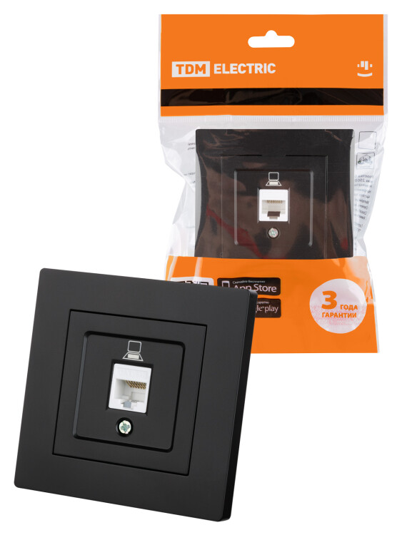 Розетка компьютерная RJ45 черная "Сенеж" TDM