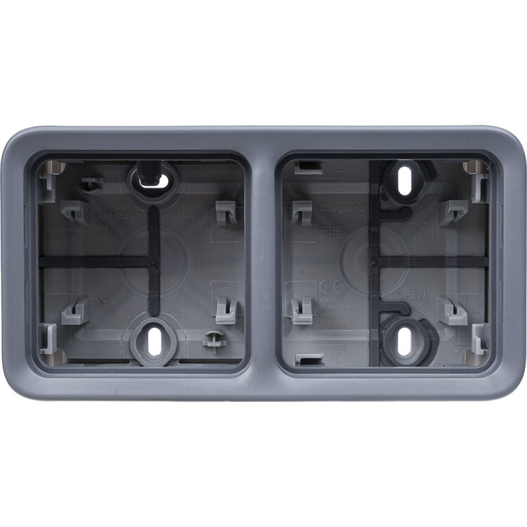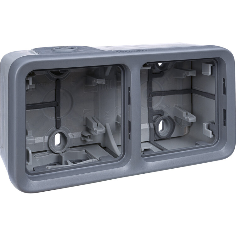 Коробка 2 поста горизонтальная серый IP55 Plexo