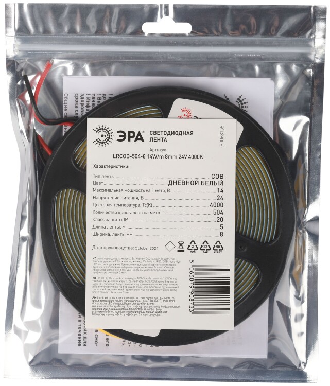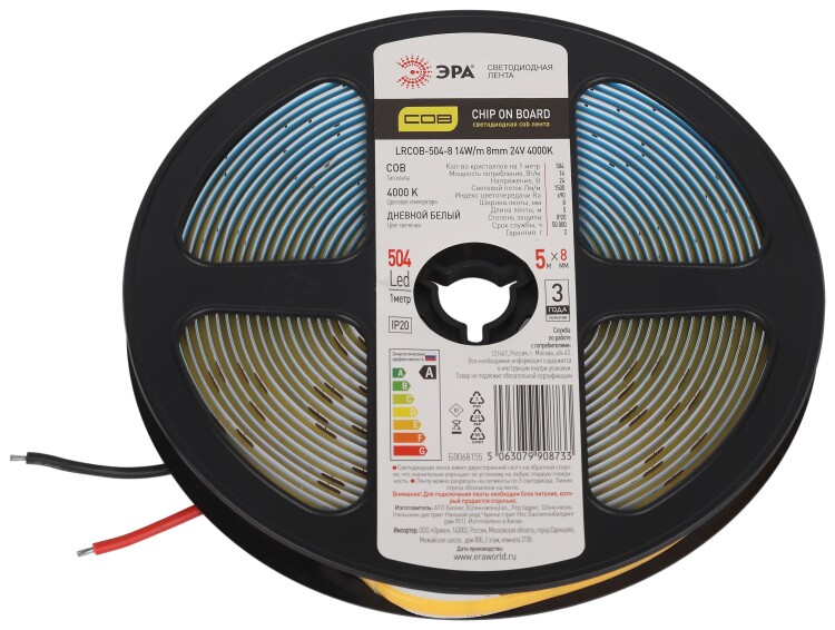 Лента светодиодная ЭРА LRCOB-504-8 14W/m 8mm 24V 4000K 3year белая 5 м
