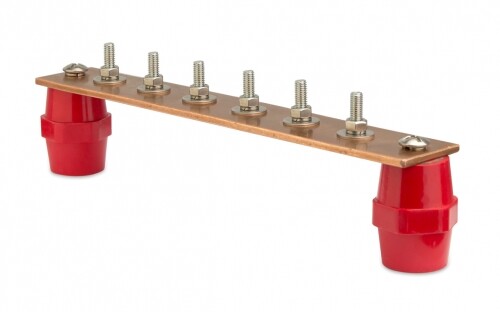 Главная заземляющая шина с изоляторами, 10 подключений, медь