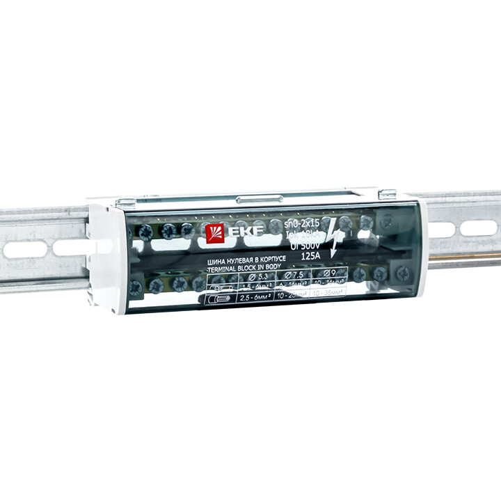 Кросс-модуль на DIN-рейку, 2 полюса, 125 А, 11х5,5 мм², 2х7,5 мм², 2х9,0 мм², PROxima