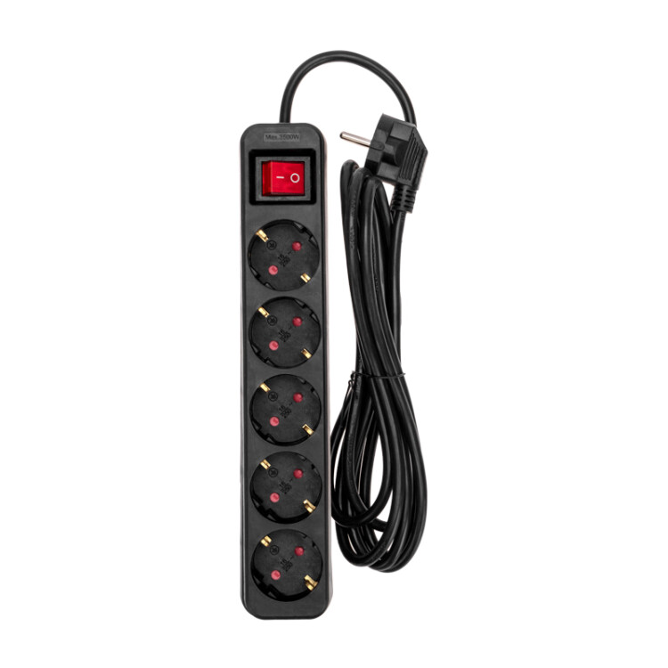 Удлинитель STANDARD 5 гнезд, 3м, 3x1,0мм², с/з, с выключателем, черный REXANT