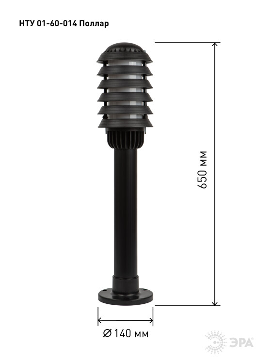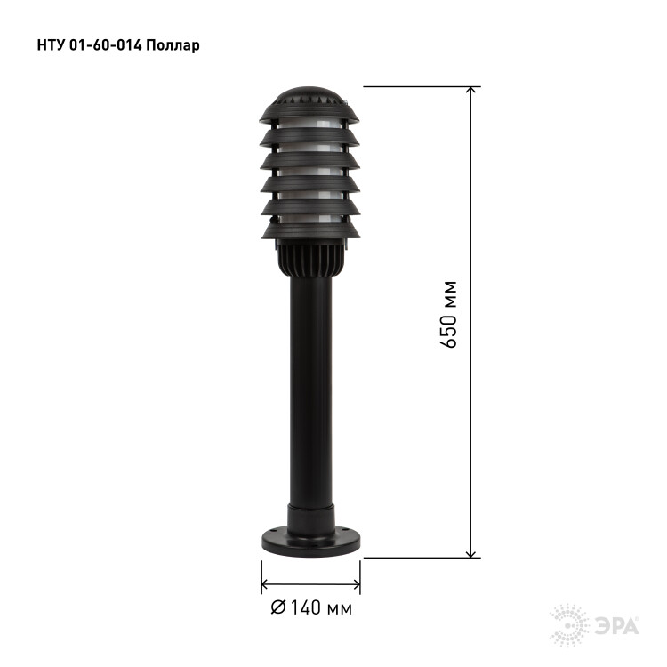 Светильник опор. 60Вт E27 IP54 165-260В 140х650мм НТУ 01-60-014 Поллар чёрный