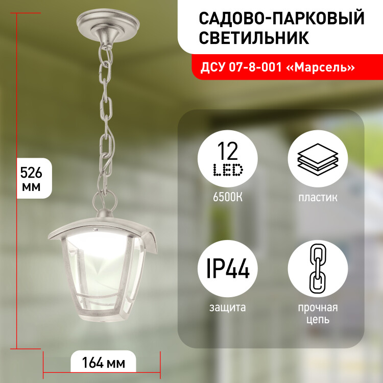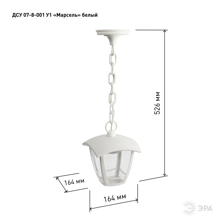 Садово-парковый светильник ЭРА ДСУ 07-8-001 Марсель белый 4 гранный подвесной IP44 светодиодный 8Вт 6500K