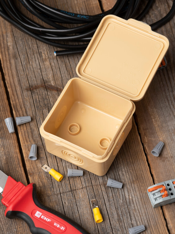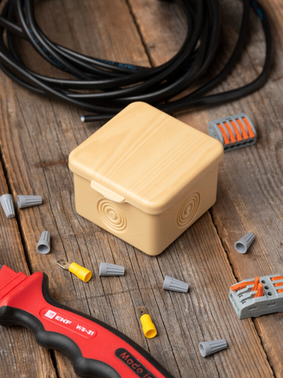 Коробка распределительная КМР-030-037 пылевлагозащищенная без мембранных вводов (65х65х50) светлое дерево EKF PROxima