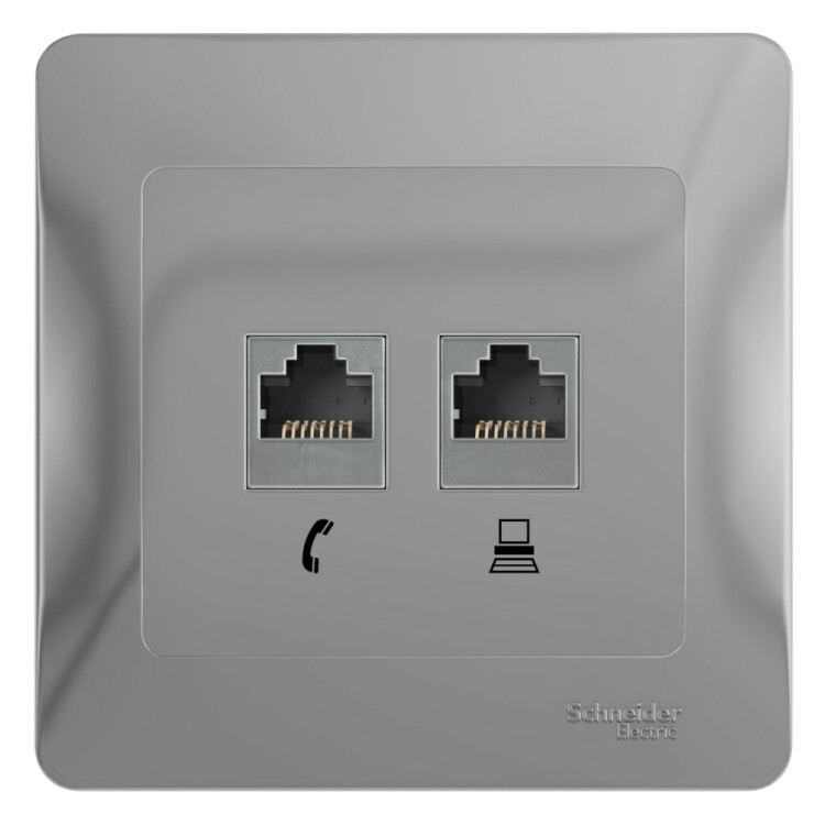 Розетка двойная RJ11+RJ45 кат.5E алюминий Glossa