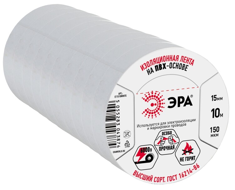 Изолента ПВХ белая 15 мм х 10 м (модель 43881/43874)