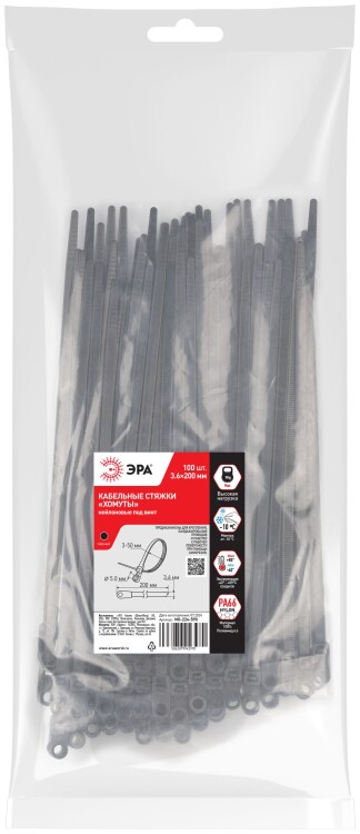 Кабельная стяжка ЭРА NO-224-590 (хомут) нейлоновая под винт 3.6 х 200 мм чёрная (100 шт/уп)