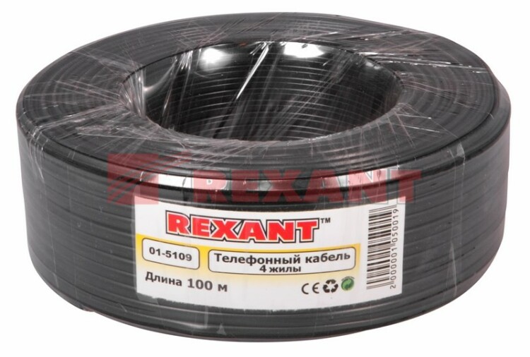 Кабель телефонный ШТЛП 4 жилы Cu, черный, 100м REXANT