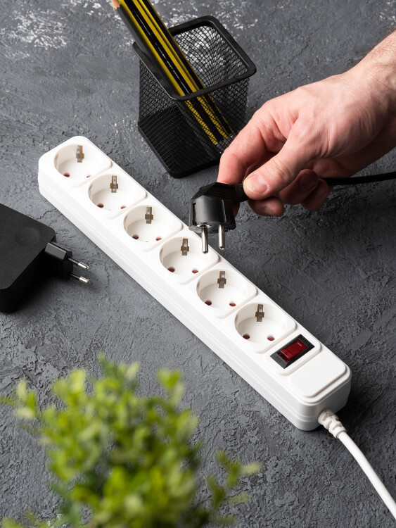 Сетевой фильтр, 6 розеток, длина 3 м, 3х0,75 мм?, 10А, с/з, IP20, термопласт, белый, Блокбастер PROxima