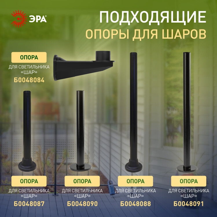 Садово-парковый светильник ЭРА НТУ 02-60-255 шар дымчатый призма на опору / кронштейн IP44 Е27 max60Вт d250mm