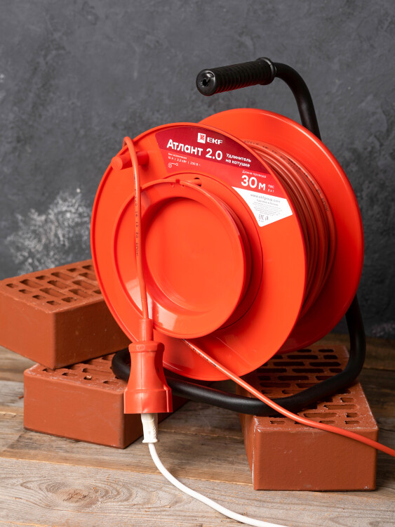 Удлинитель на катушке "Атлант 2.0" 1 гнездо 30м без заземления ПВС 2*1 10А/2,2кВт PROxima