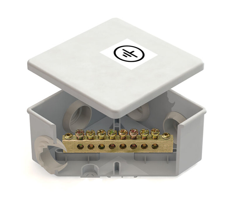 Коробка уравнивания потенциалов для открытой установки 85х85х40мм, 6 вводов, с шиной, IP44