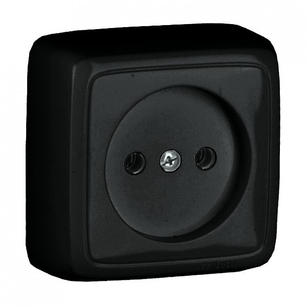 РА16-103-08 Розетка открытой установки, одноместная, с изолирующей пластиной, цвет черный