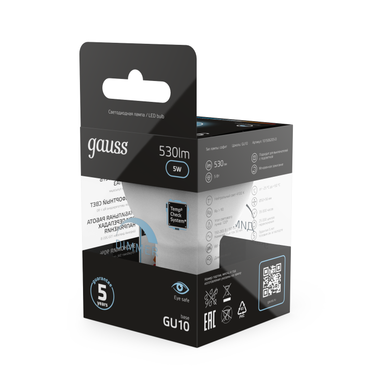 Лампа светодиодная 5 Вт 230В GU10 d=51mm, диммируемая холодный белый 4000К