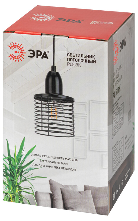 Светильник подвесной 60Вт E27 d110*950 мм черный PL5 BK