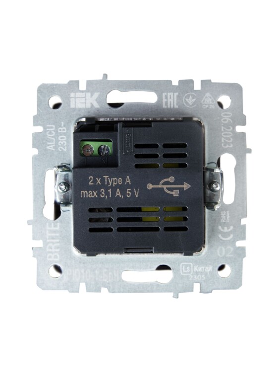 Розетка USB A+A 5В 3,1А РЮ10-1-БрЧ черный BRITE