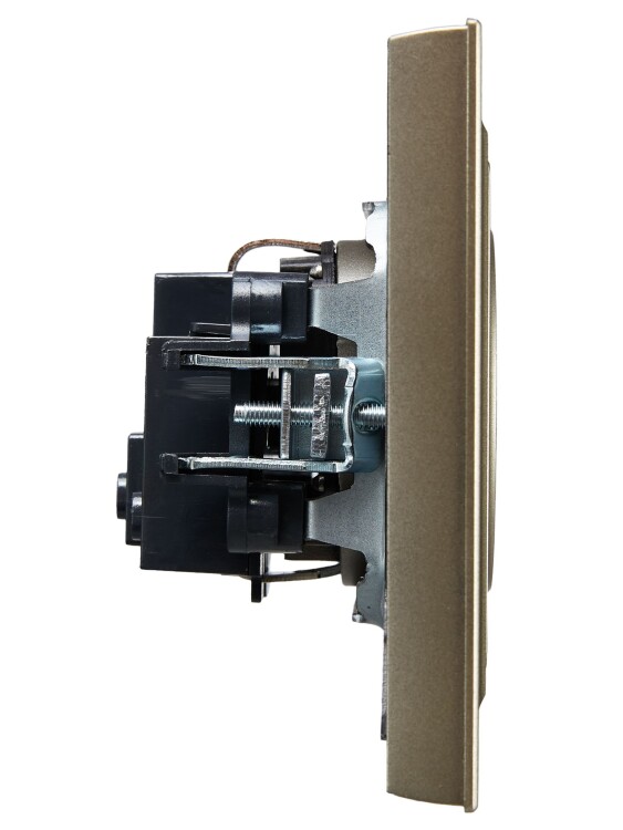 Розетка 2P+E с защитными шторками 16А в сборе РСР14-1-0-БрШ шампань BRITE