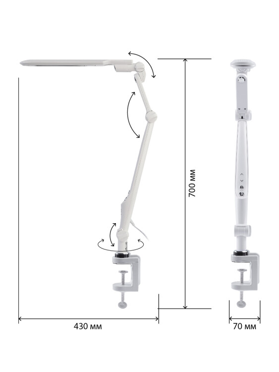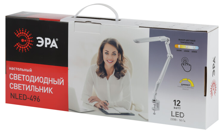 Настольный светильник ЭРА NLED-496-12W-W светодиодный на струбцине белый