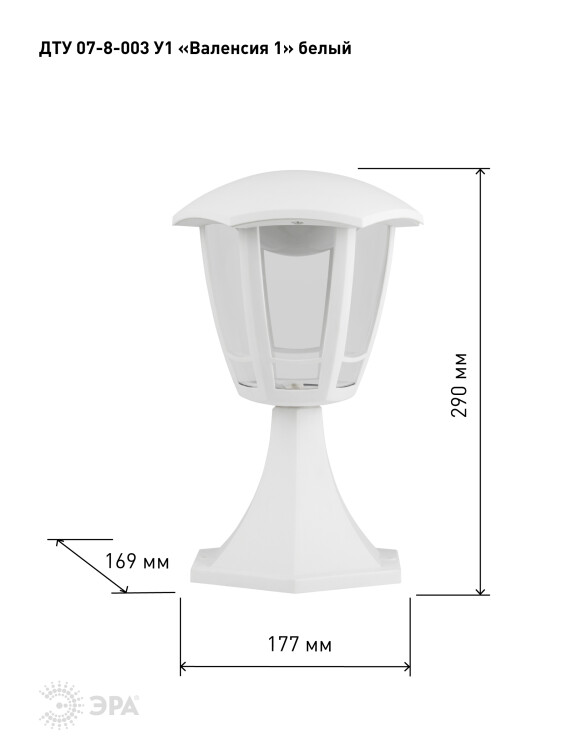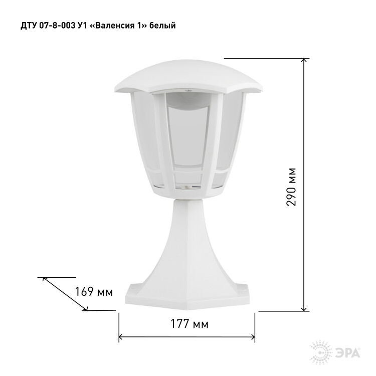 Садово-парковый светильник ЭРА ДТУ 07-8-003 Валенсия 1 белый 6 гранный напольный IP44 светодиодный 8Вт 6500K