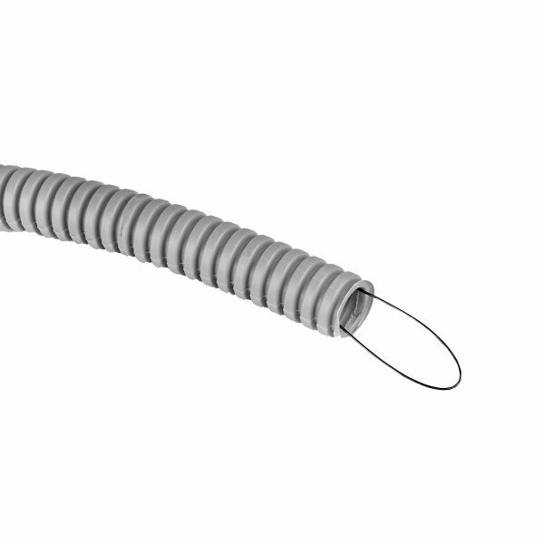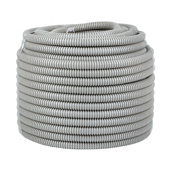 Труба ПВХ гибкая гофрированная д.16 мм, лёгкая, с протяжкой, цвет серый, (Бухта 50м)
