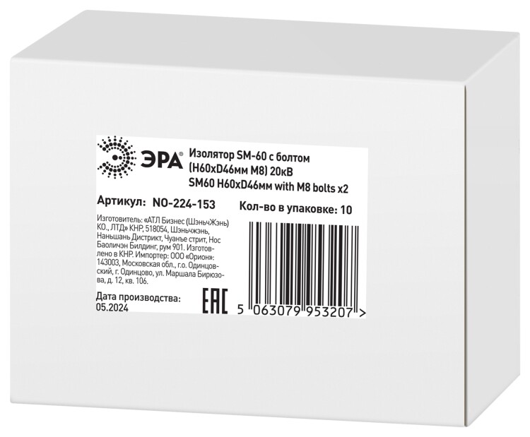 Изолятор ЭРА NO-224-153 SM-60 с болтом (Н60хD46мм М8) 20кВ
