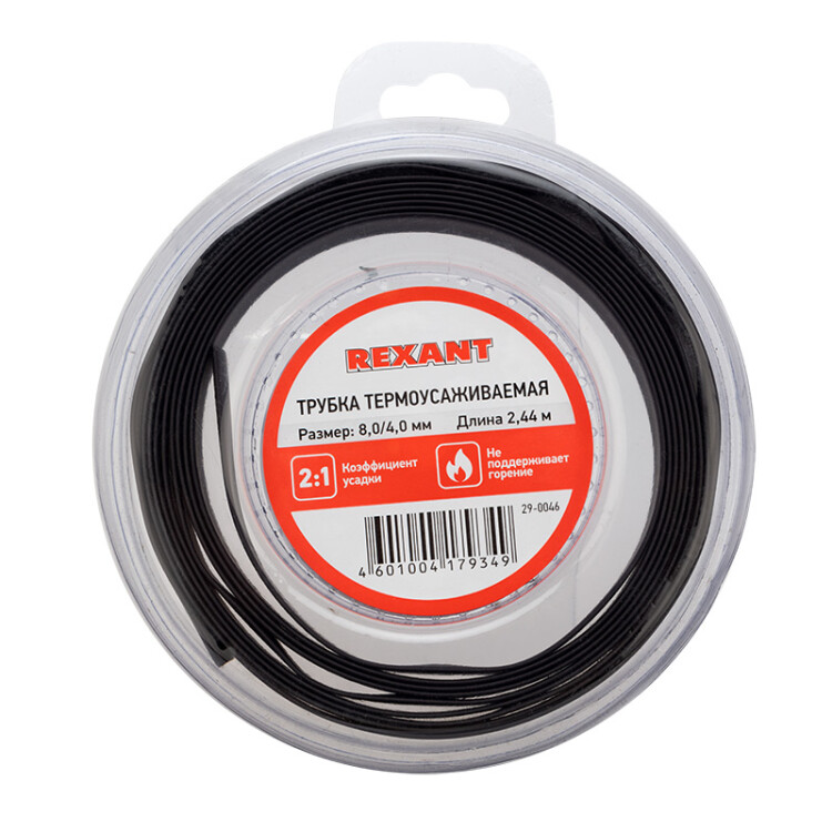 Трубка термоусаживаемая ТУТ нг 8,0/4,0мм, черная, ролик 2,44м
