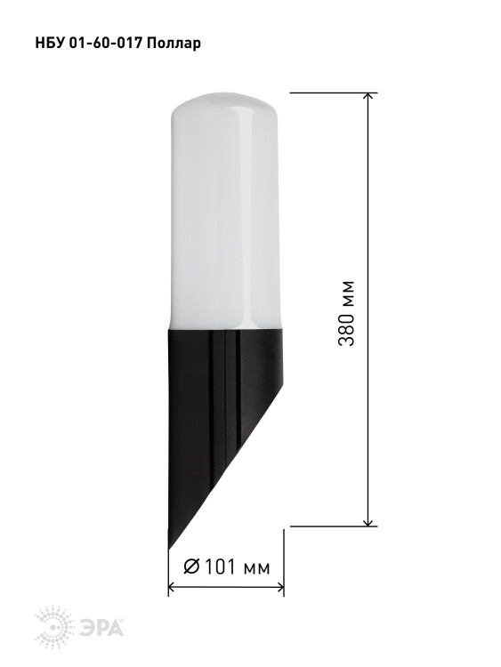 Садово-парковый светильник ЭРА НБУ 01-60-017 Поллар настенный черный IP54 Е27 max60Вт h380мм