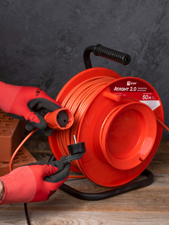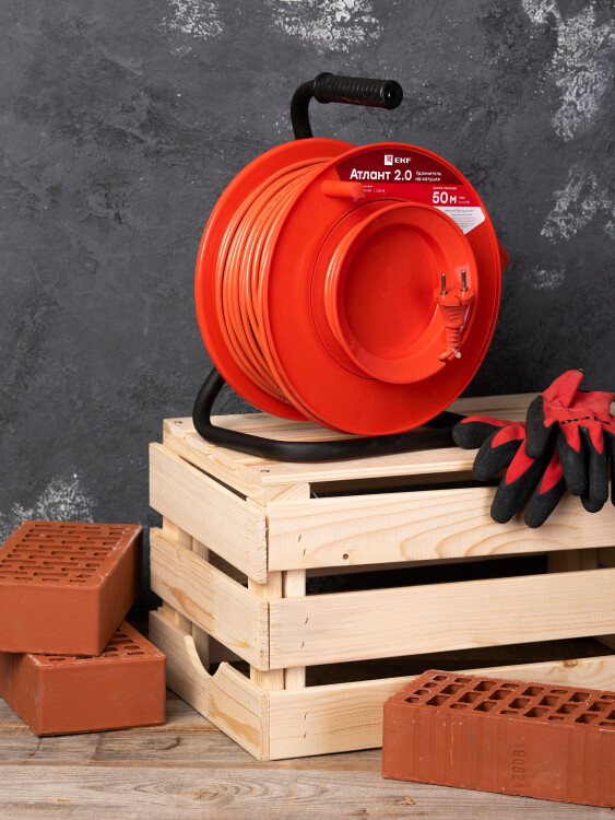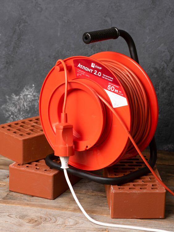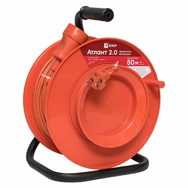 Удлинитель на катушке "Атлант 2.0" 1 гнездо 50м без заземления ПВС 2*0,75 6А/1,3кВт PROxima