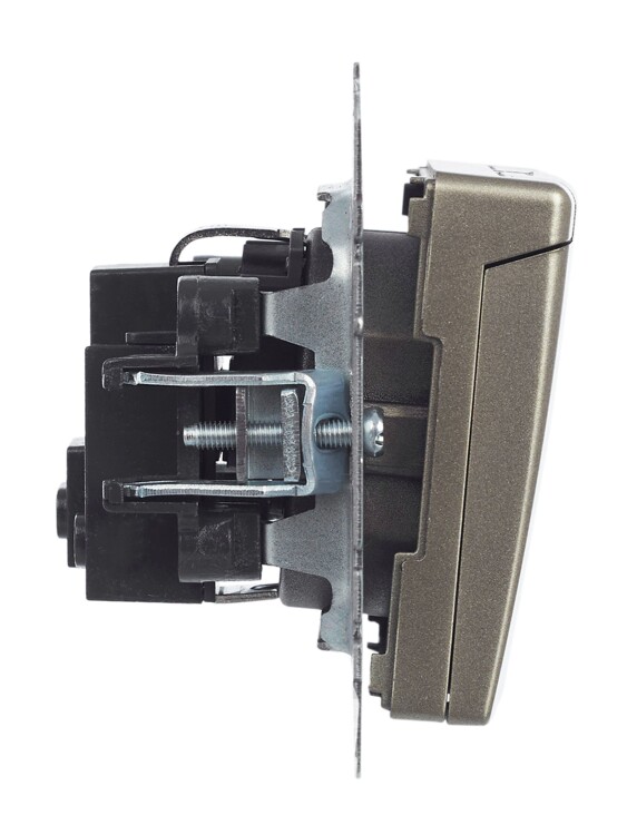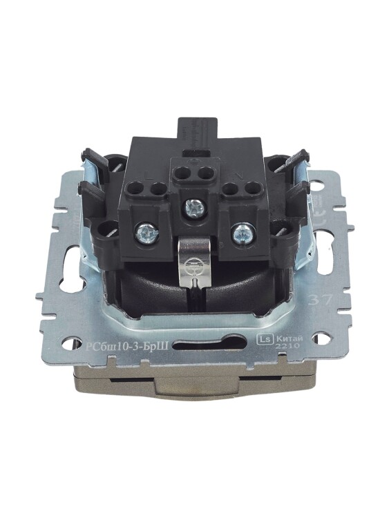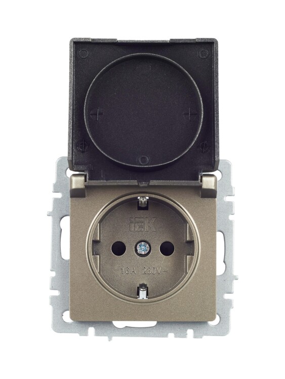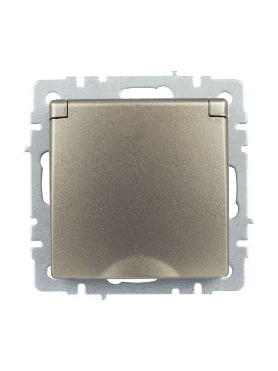 Розетка 2P+E с защитными шторками и крышкой 16А IP20 РСбш10-3-БрШ шампань BRITE
