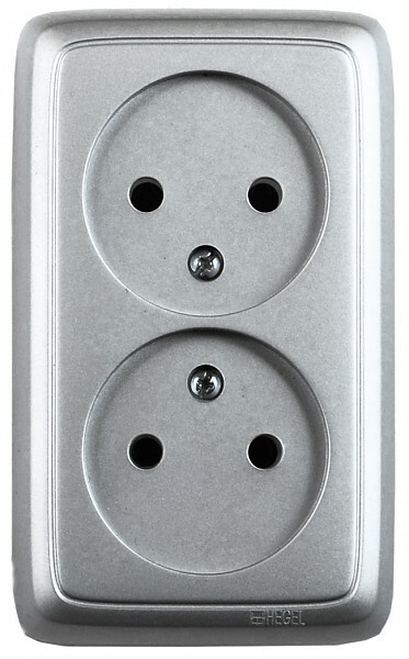 Розетка 2х2P со шторками изол.пластина серебро Hegel