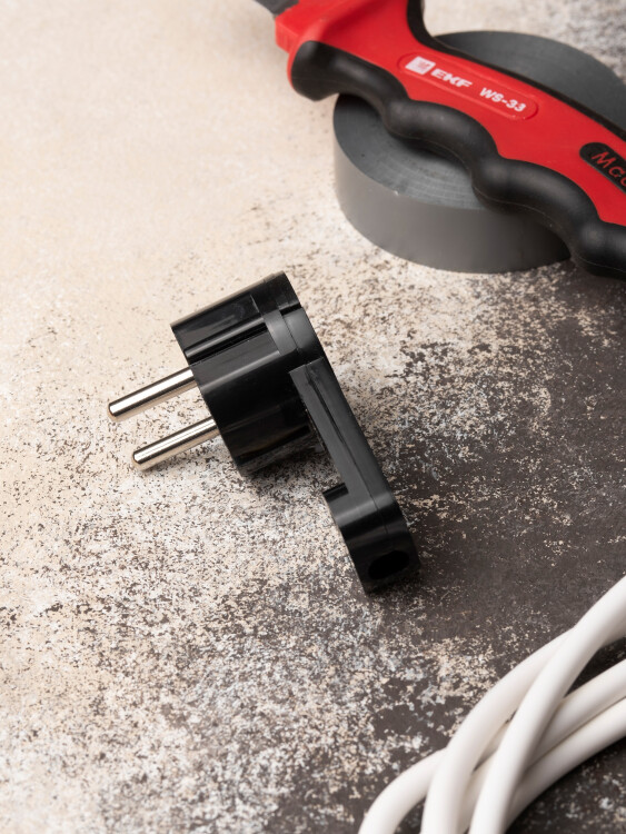 Вилка угловая плоская с/з черная Stealth PRO 16А 250В EKF