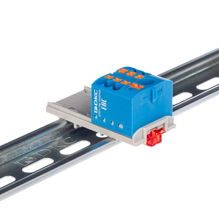 Блок распределительный с верт. адаптером на рейки шириной 15/35мм, зажим push-in, 1 ввод 6 кв.мм, 6 точек подключения 2,5 кв.мм, синий