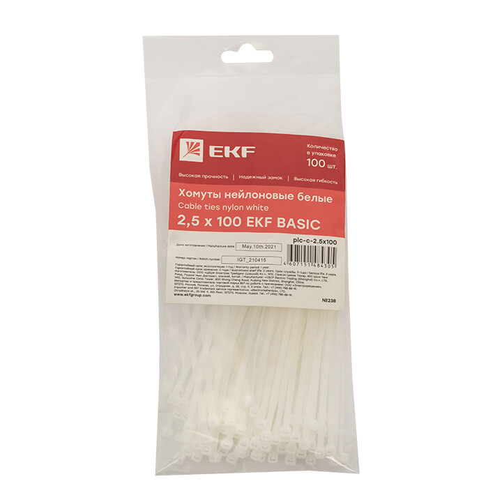 Хомут нейлоновый (2,5х100) (100шт.) EKF Basic