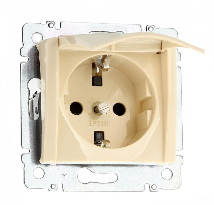 Розетка 2P+E 16A с крышкой слоновая кость Valena(774322)