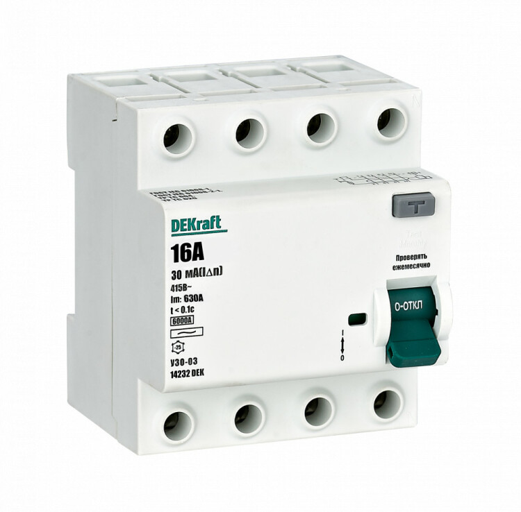 Выкл. диф. тока УЗО03-6кА-4P-016А-030-AC