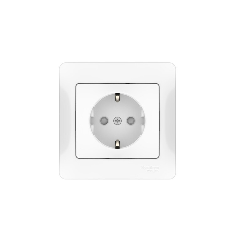 GLOSSA РОЗЕТКА с заземлением со шторками, 16А, в сборе, быстрозажим. клем., БЕЛЫЙ