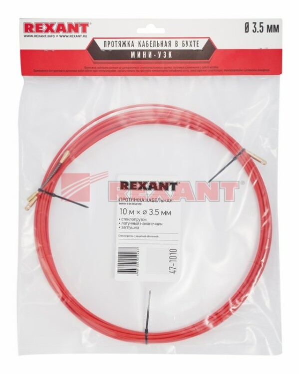 Протяжка кабельная (мини УЗК в буxте), стеклопруток, d=3,5мм, 10м, красная REXANT