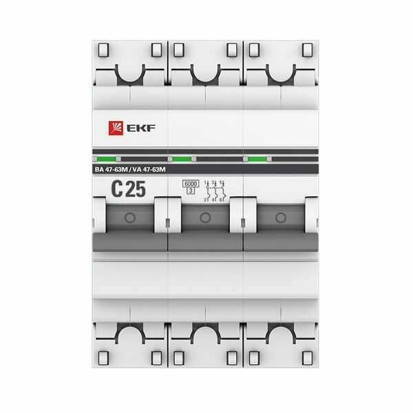 Авт. выкл. 3P 25А (C) 6кА ВА 47-63M без тепл. расцепит. EKF PROxima