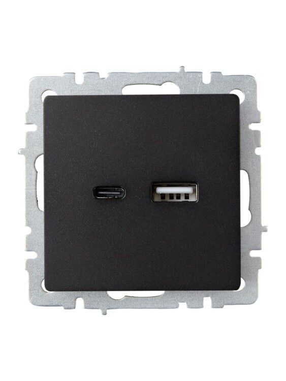 Розетка USB A+C 18Вт РЮ11-1-БрЧ черный BRITE