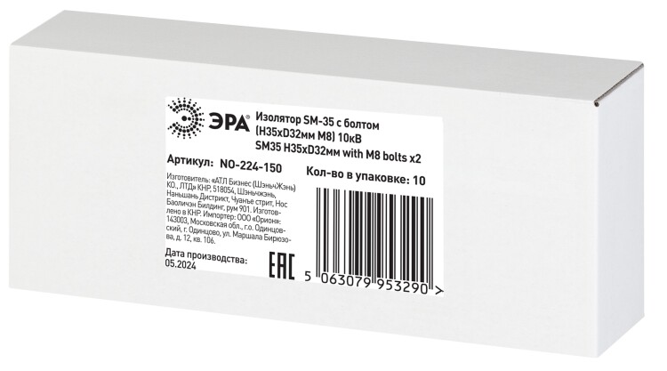 Изолятор ЭРА NO-224-150 SM-35 с болтом (Н35хD32мм М8) 10кВ