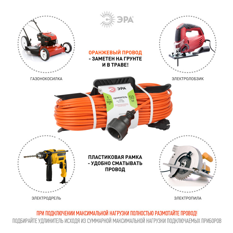 Удлинитель силовой ЭРА UFx-1e-3x1.5-50m на рамке с заземлением 1 гн 50м ПВС 3х1,5мм2