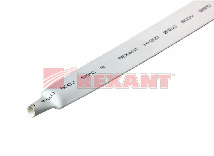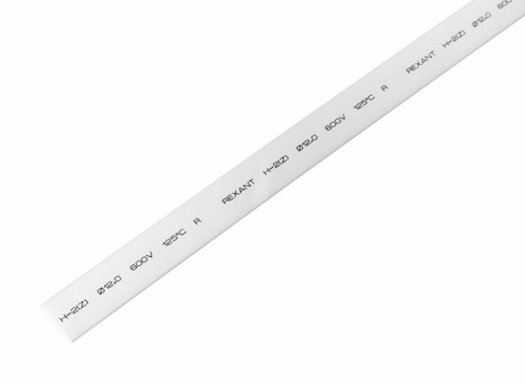 Трубка термоусаживаемая ТУТ нг 12,0/6,0мм, белая, упаковка 50 шт. по 1м REXANT