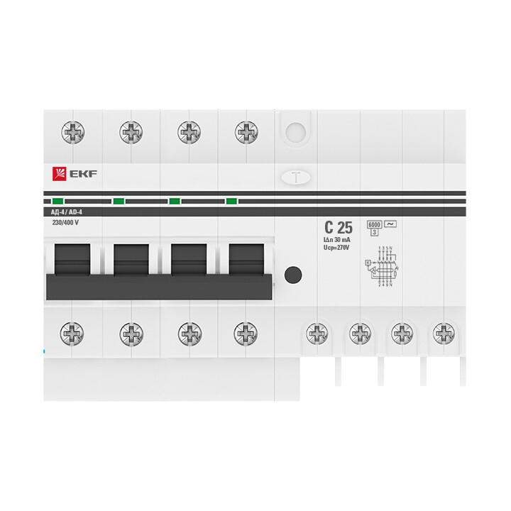 Диф. автомат 4P 25А 30мА тип АС х-ка C эл. 6кА АД-4 EKF