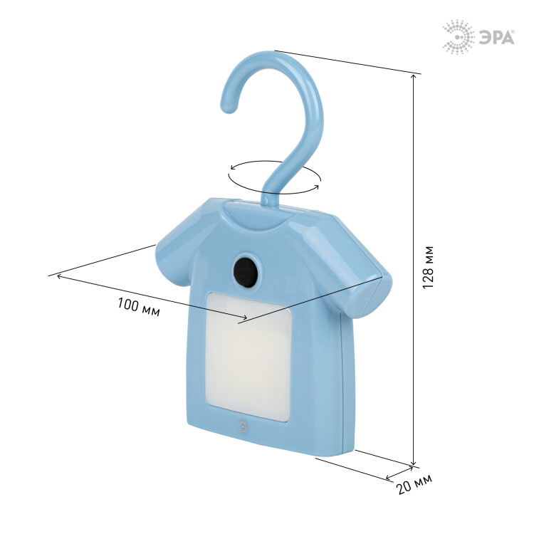 Ночник - светильник светодиодный ЭРА NLED-485-1W-SW-BU на батарейках с выключателем голубой