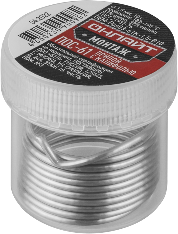 Припой ОНЛАЙТ 90 098 OEM-Pos03-61K-1.5-B10 (банка, 1.5мм, 10г)