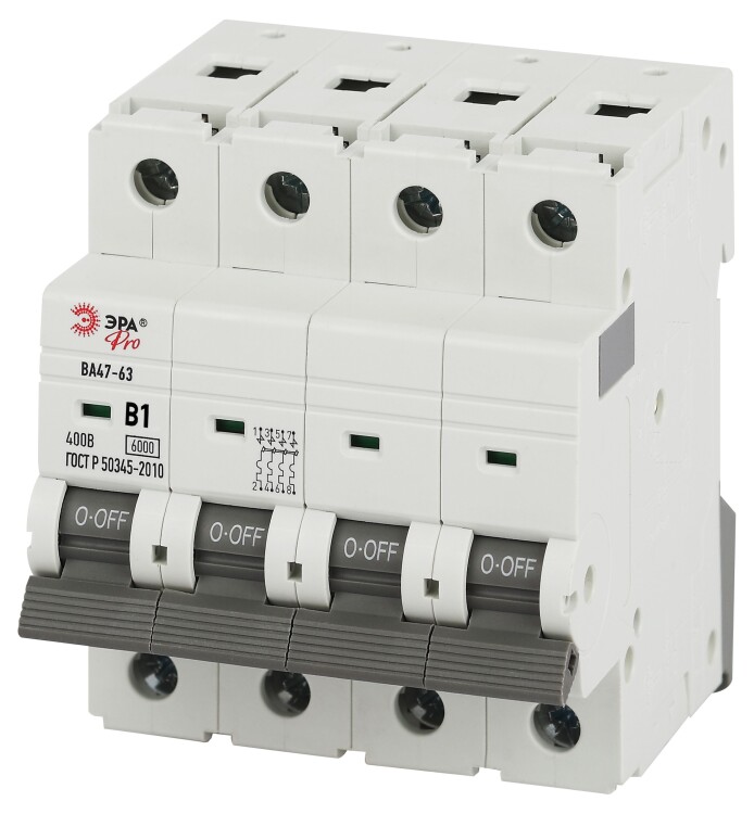 Автоматический выключатель ЭРА PRO VA63-4P01B6 ВА47-63 4P 1А кривая B 6кА