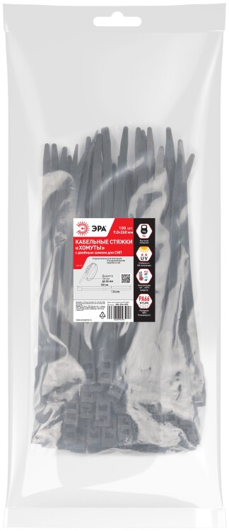 Кабельная стяжка ЭРА NO-224-593 (хомут) нейлоновая для СИП с горизонтальным замком 9.0 х 260 мм чёрная (100 шт/уп)