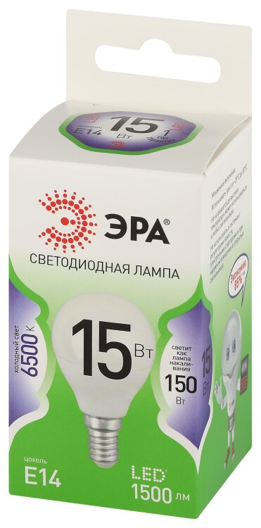Лампочка светодиодная ЭРА GREEN LINE LED P45-15W-865-E14 GL E14 15 Вт шар холодный свет