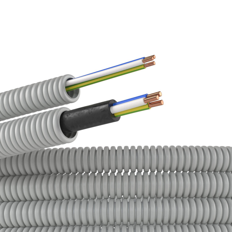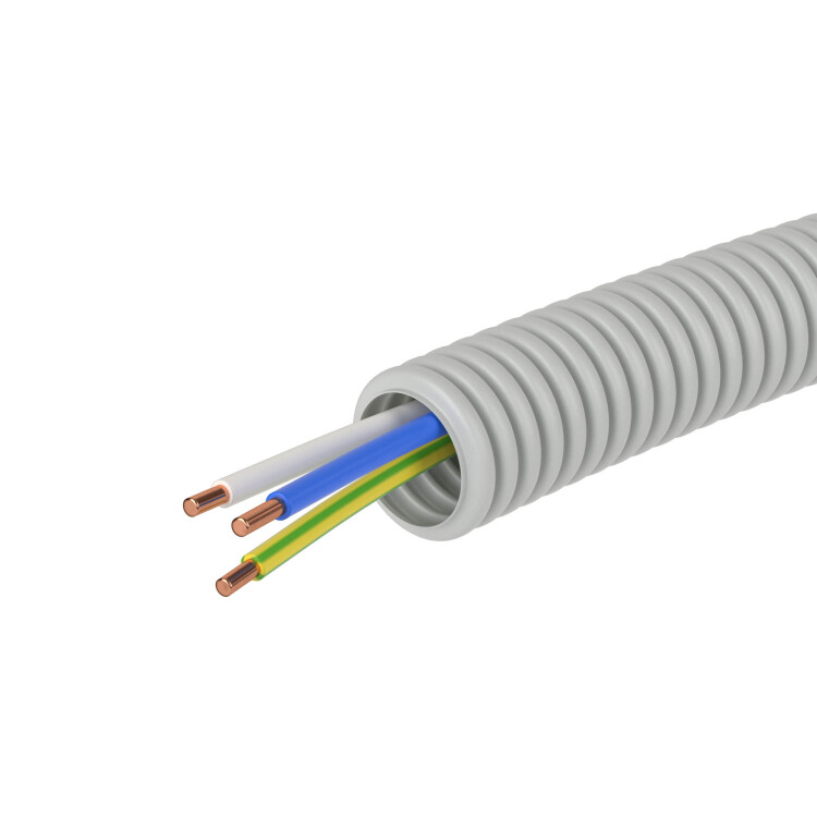 Электротруба ПВХ гибкая гофр. д.16мм, цвет серый, с проводом ПуВ 3х2,5мм РЭК ГОСТ, 25м